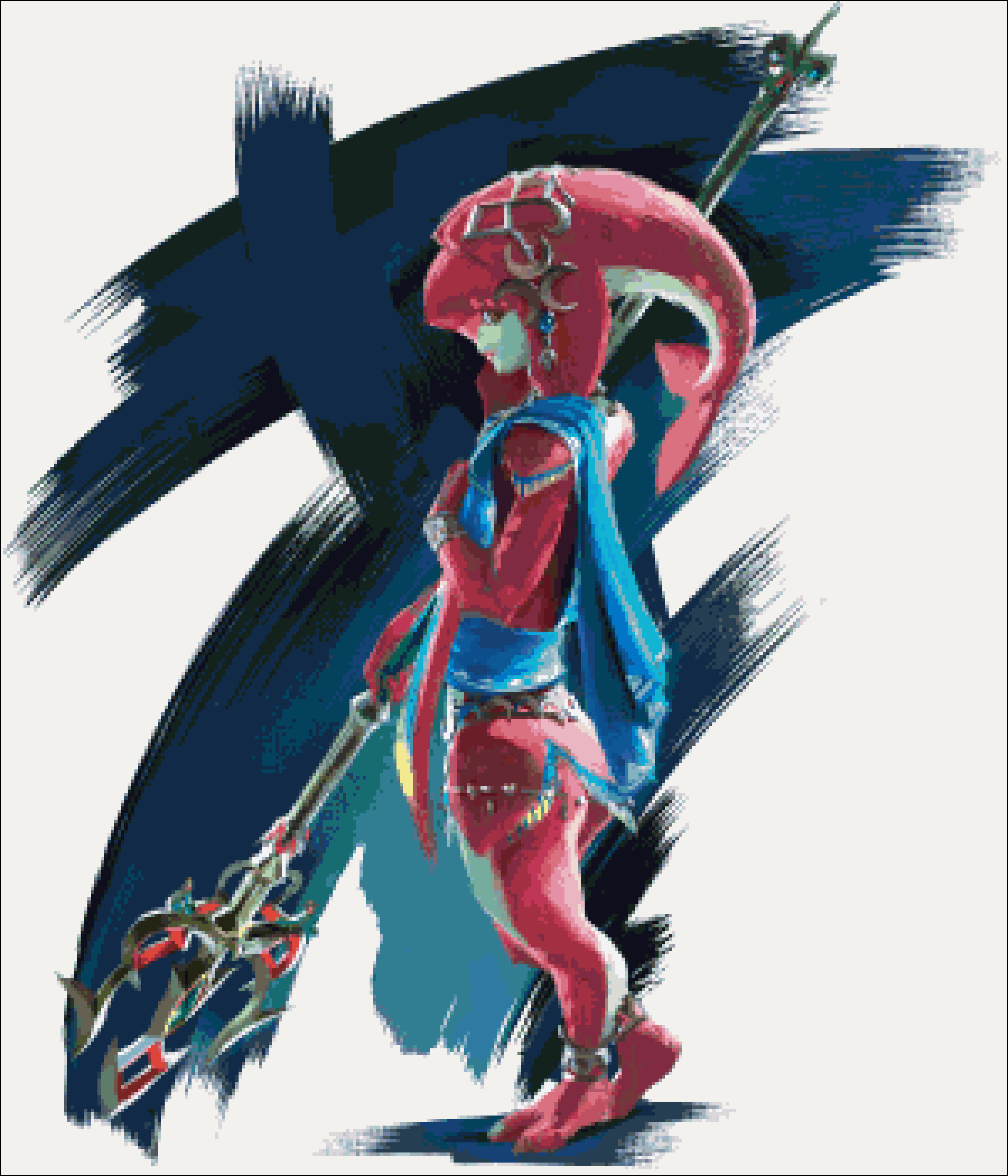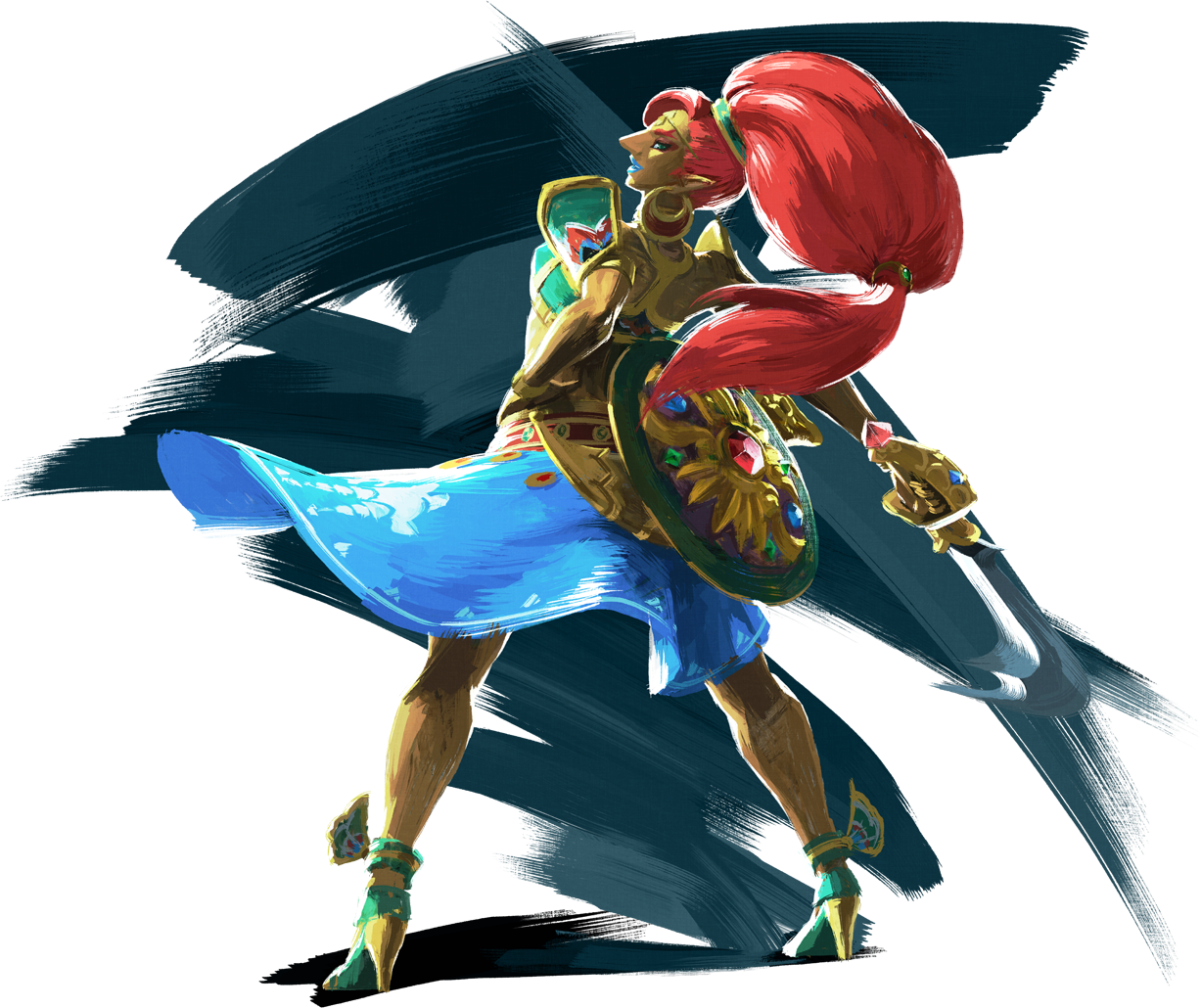 I really love the artworks from the Champions of BotW. I want to start a long term project making one after another.