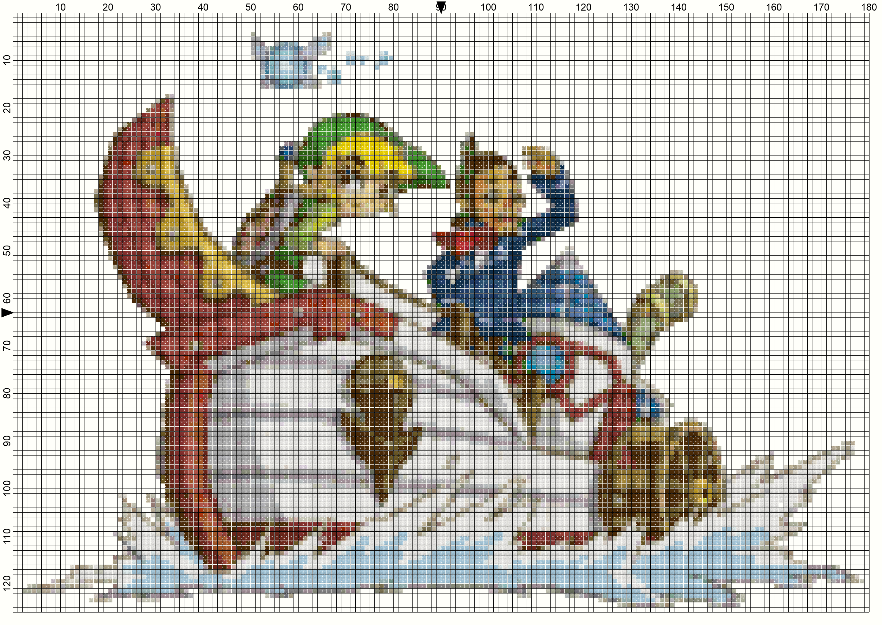 180x is certainly doable. Spirit Tracks was 180x180, so this will be a bit smaller in not being as tall. And I won't have to stitch all the white background, so that'll save a lot of time relative to ST. Don't sweat that it took a few days to do this; I appreciate you taking the time to mess with it. And we're a couple months out from starting it, too as we knock out our GDQ projects. Once done, getting the threads and such is fairly easy/doesn't require a lot of time, even if I have to order stuff. Making the pattern is the time consuming part (well, stitching it is. Please don't take 300 hours designing this pattern
