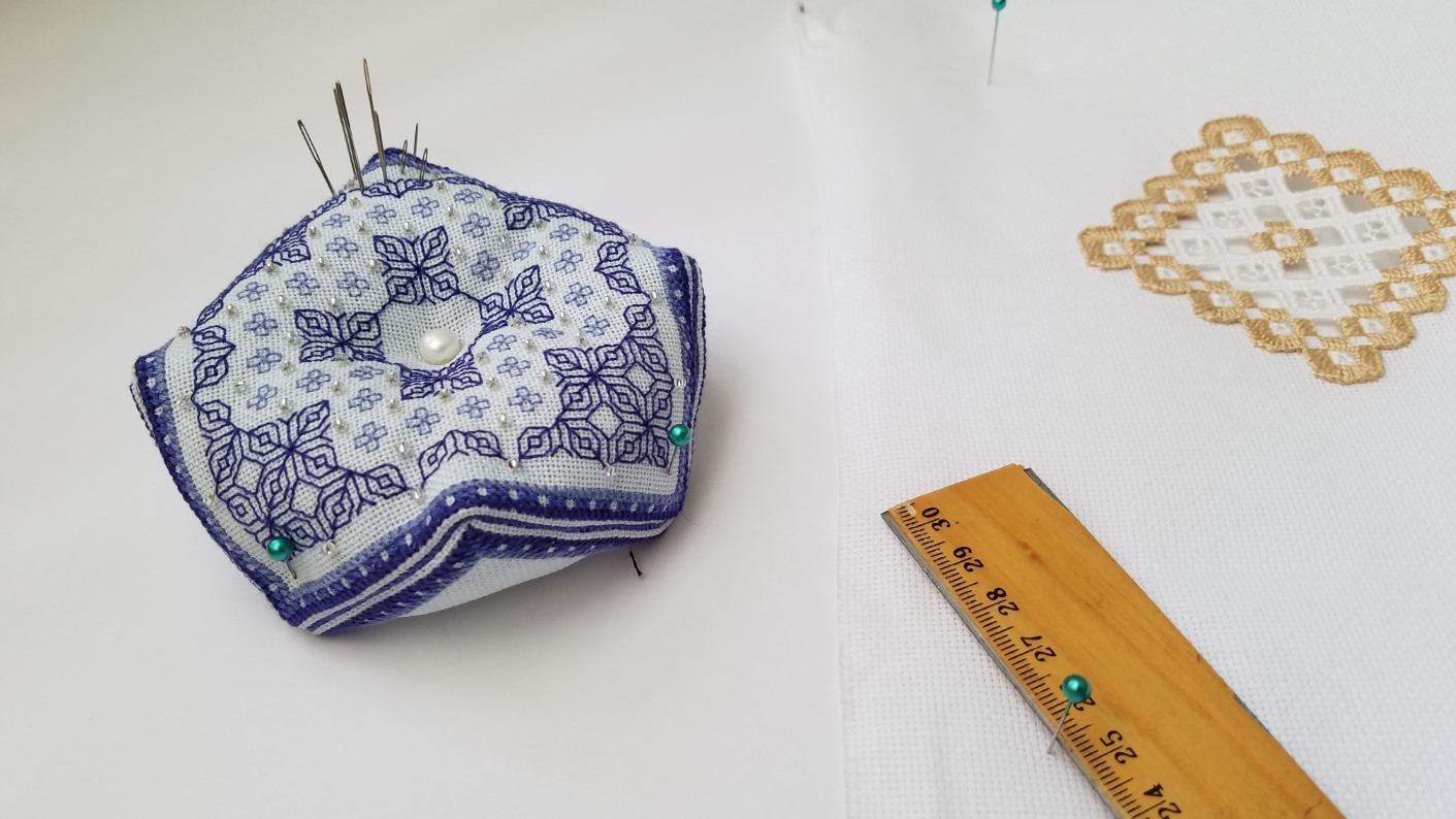It's been 3 months since I've posted any progress. Keep procrastinating it :blush: . I finished my biscornu early March, but I just hadn't gotten around to taking photos.