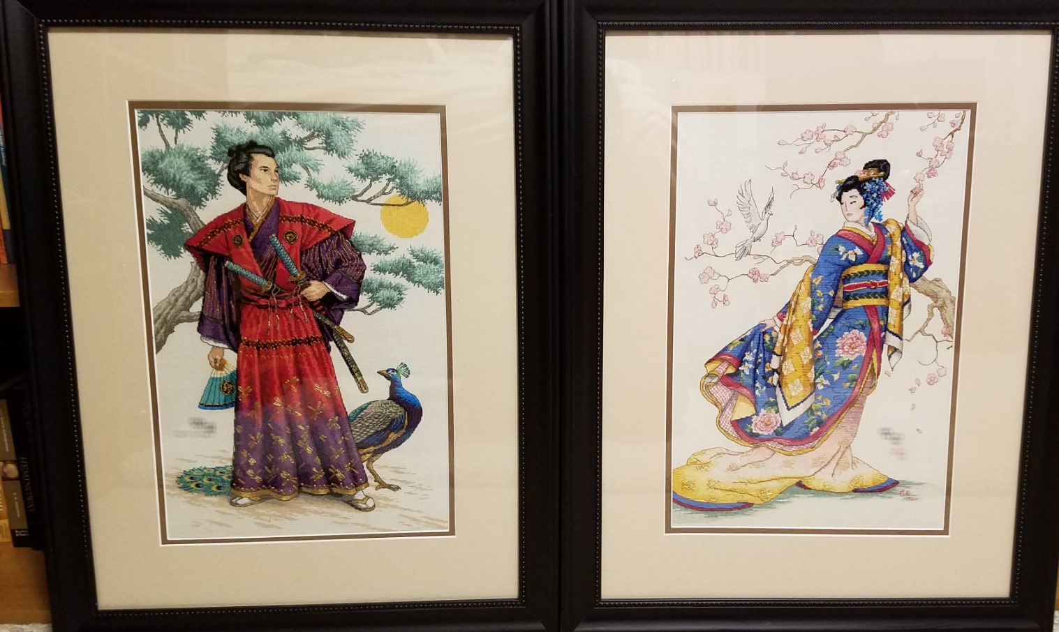 My mom stitched these. My only contribution was washing, pinning, ironing and getting them into the mats/frames. And you know getting her to finally finish the Samurai. It had been 5-10 years since she worked on it. It was pretty much a UFO. She had only the (extensive) backstitching left, but had put it off and then lost the pattern and the rest of her materials. I had found a copy of the pattern online a few years ago and she still hadn't shown interest, but last year I picked up the threads for her and kept cross stitching and showing her stuff until she really wanted to do some stitching herself. A couple months later she finished :yahoo: and is currently a bit obsessed with cross stitching. Probably a lot my fault lol.