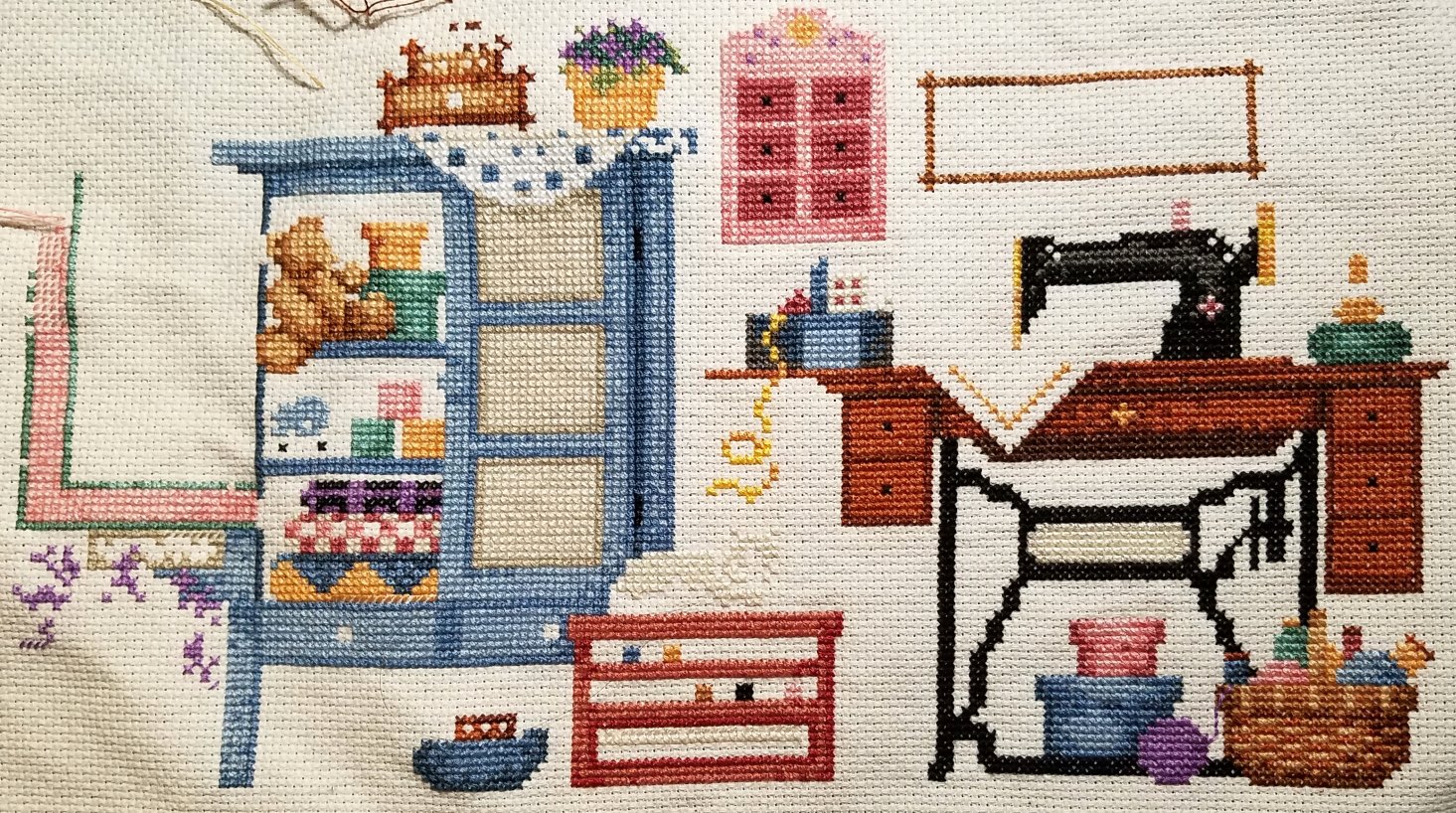 I try to be good and not stress it and it gets better and then I do stupid things to aggravate it like start playing PC games again. I think holding the hoop for hardanger so much is what triggered it in the first place (that compounded with regular computer use and leaning on my left hand for 5 hours while I dismantled an old box spring to recycle/bin). Luckily, I've found that as long as I use a stand or frame and don't hold the hoop, stitching is actually fine. So, I've decided to set aside my hardanger for a month or two and go back to cross stitch. I've picked my sewing room back up to work on and hopefully I'll get the motivation to continue the SAL piece soon.