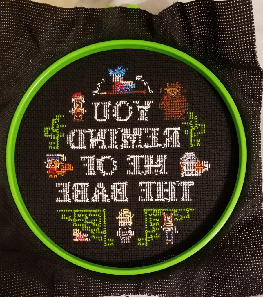 I was pattern shopping on Etsy last week and felt I should at least start the last pattern I bought on there (in October :blush: ). It's a medium?-sized piece, but with the tiniest little figures of the characters from the Labyrinth movie. The text was fairly easy to stitch despite being on black and it made me want to stitch more. Now, the characters have a lot of color changes and it's taking a bit of time. I expect to finish it this week. I probably would have already, but I joined Reddit for their CrossStitch subreddit and I somehow got distracted and redirected to totally unrelated subs like StolenDogBeds smh (I've visited reddit before, but hadn't realized how much of a clickbait sinkhole it is lol).