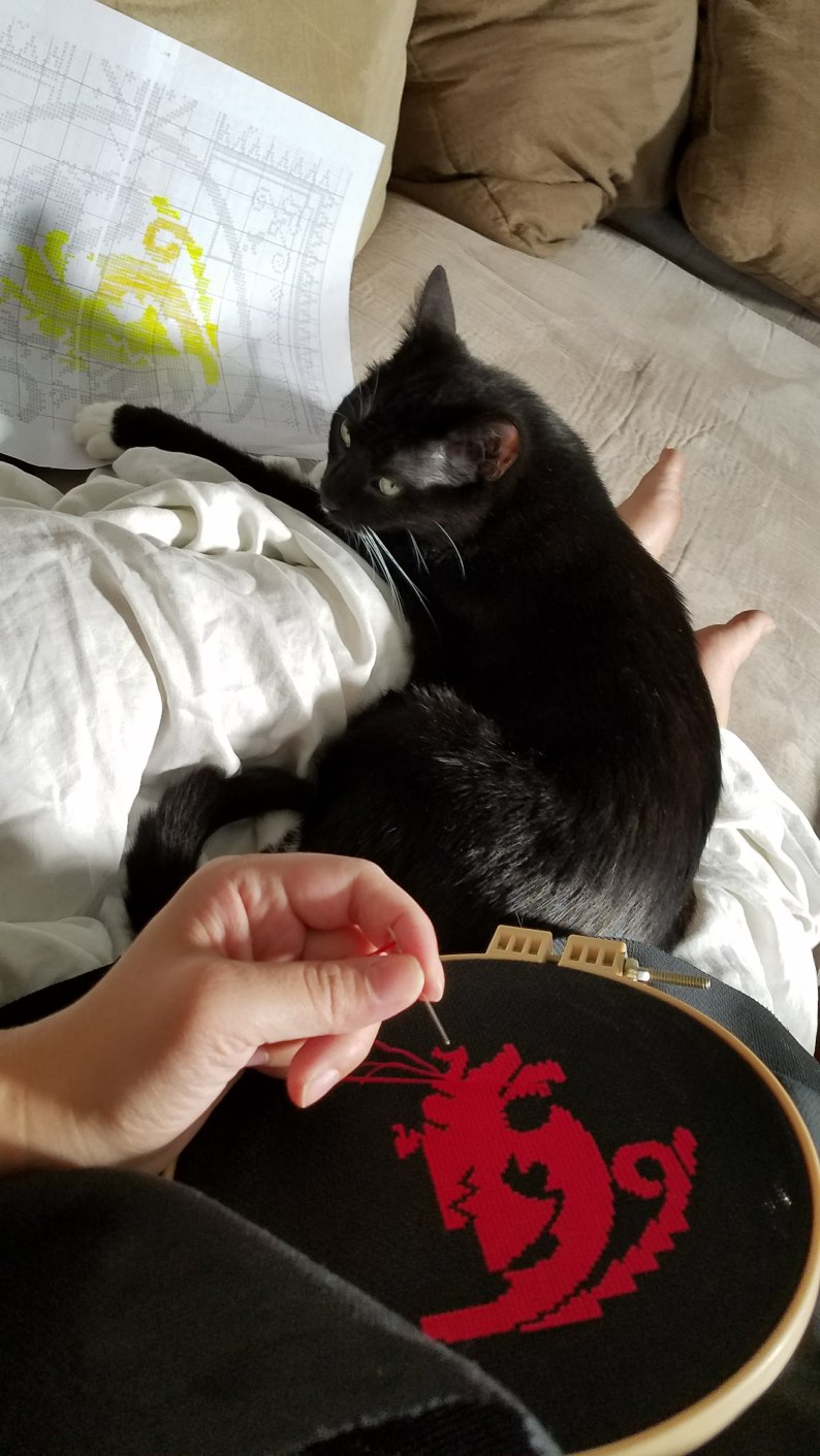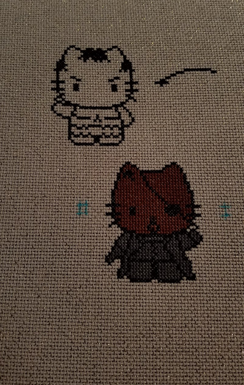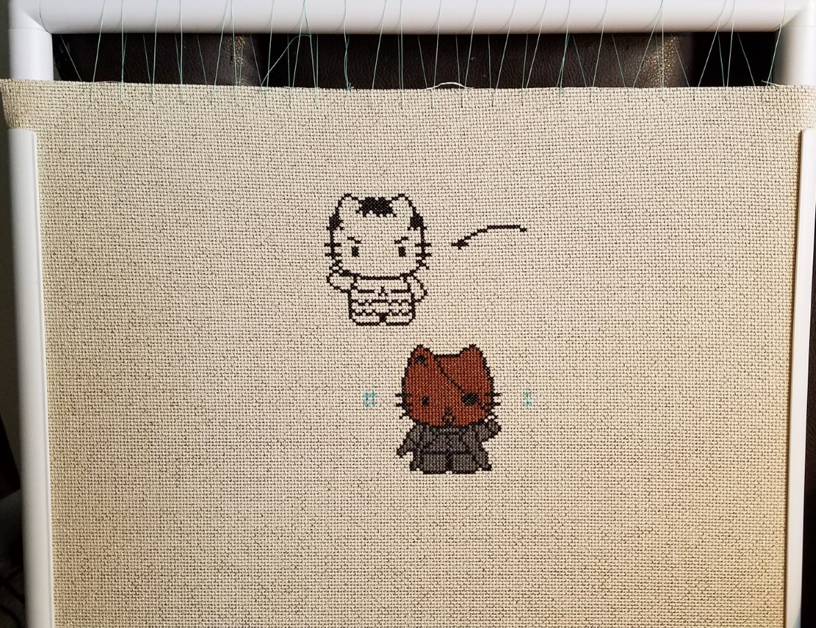 I haven't felt like putting my Egyptian Sampler back on a scroll frame, yet. Instead I'm doing a monochrome Game of Thrones pattern I got of Etsy last month. I was hoping to have a little bit more finished on this pattern by now, but I keep getting furry interference.