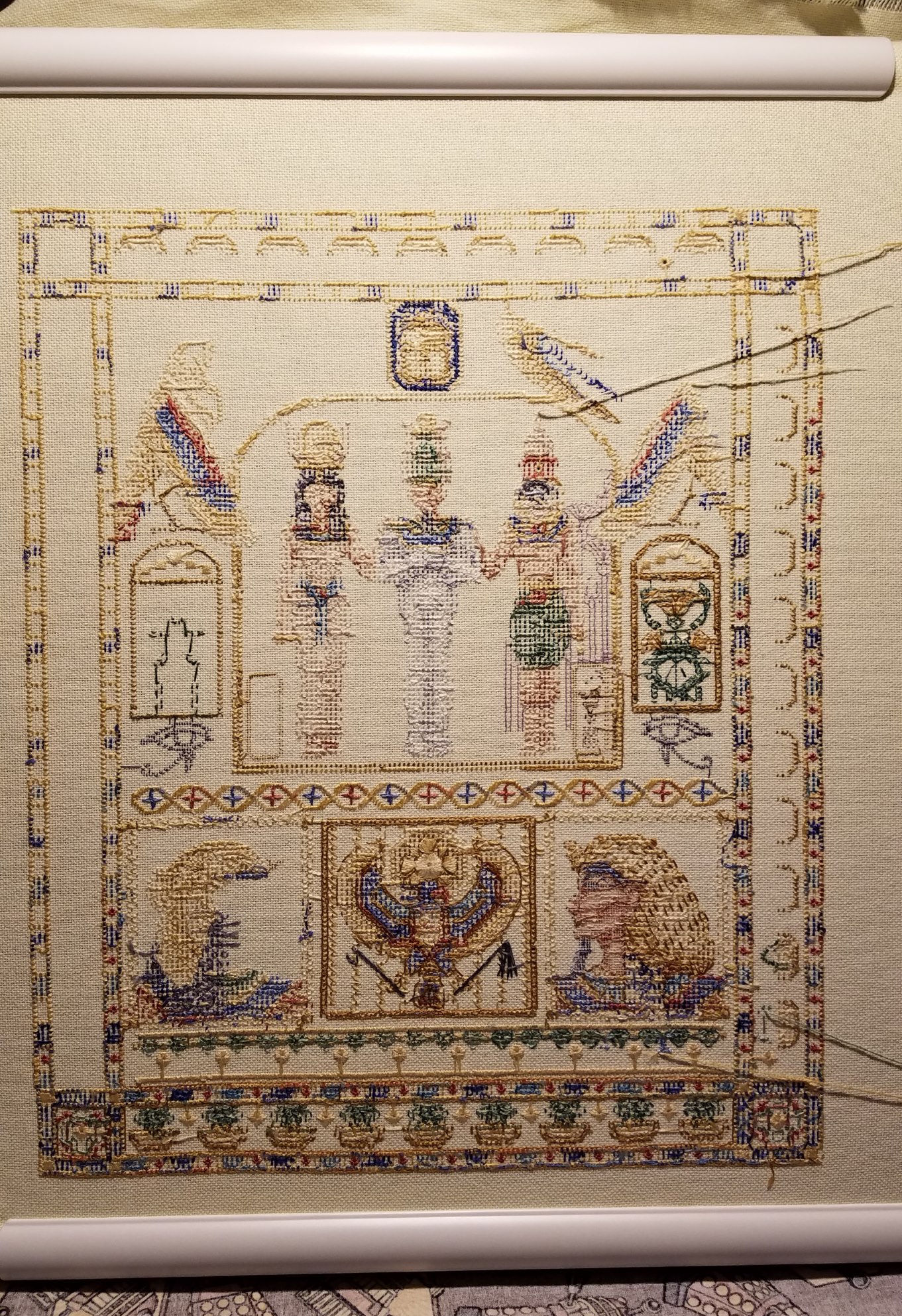 Re: Moirae's Misc Stitches (WIP-Egyptian Sampler update 4/29/18 off-frame photo)