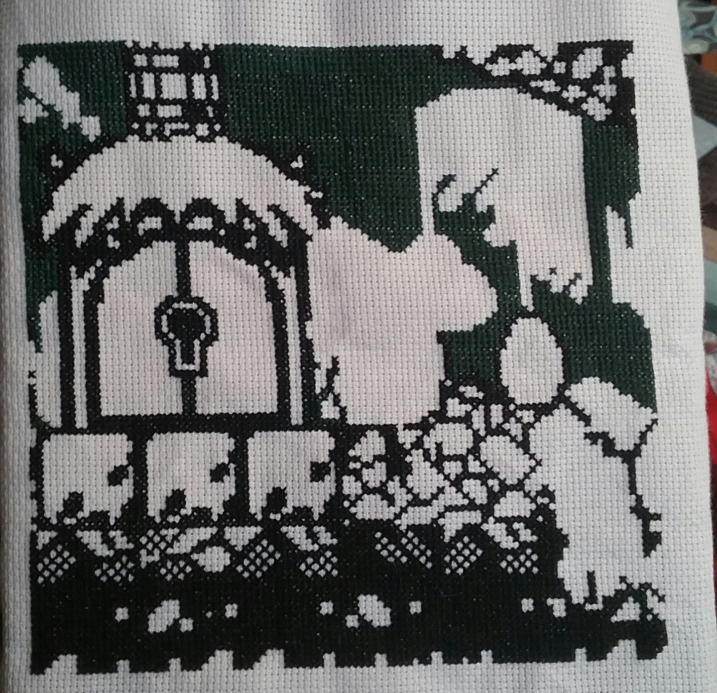 So much black! I love how the patterns look like that, but I lose track so quickly whenever I try to do large sections of one color. Great job! Can't wait to see the splashes of color added to it.