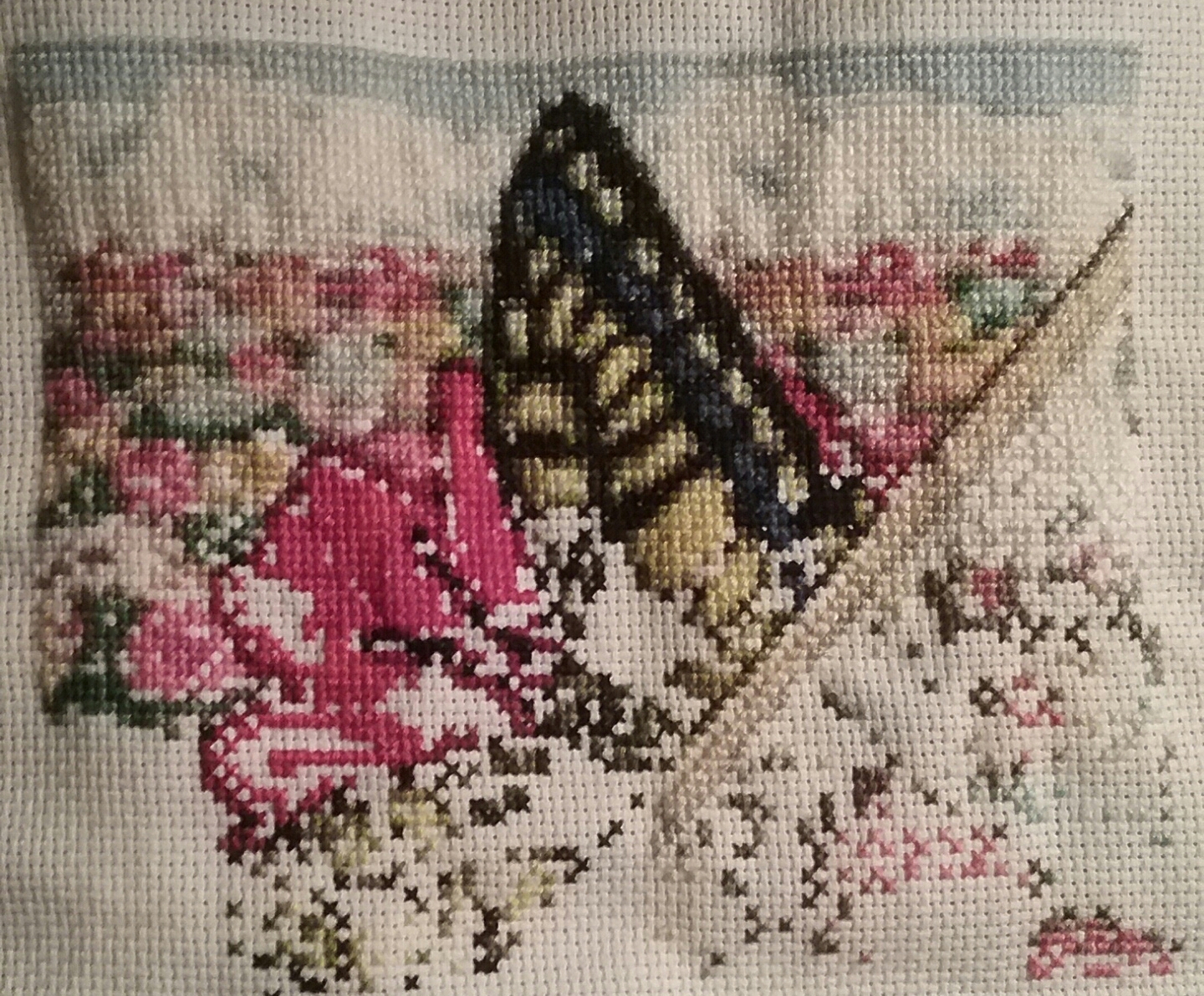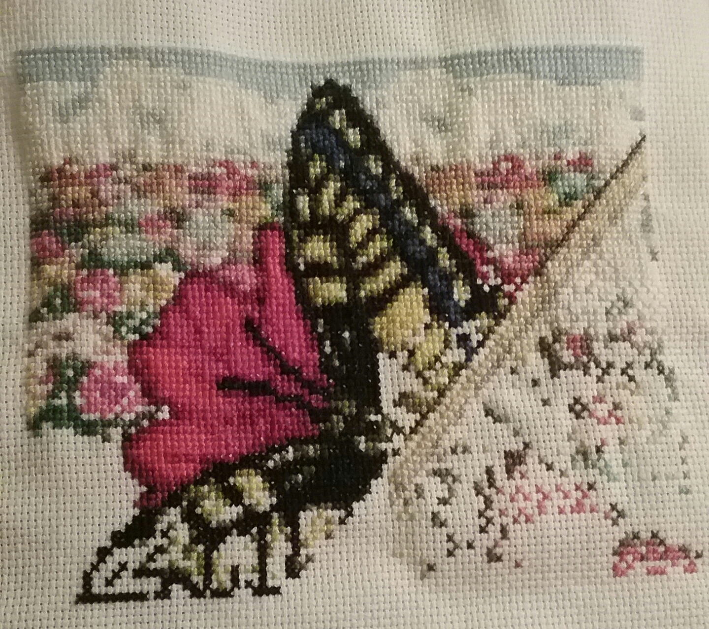 big flower all bit done (a few outer stitches left to go)...and a bunch of black on the butterfly from page 1!