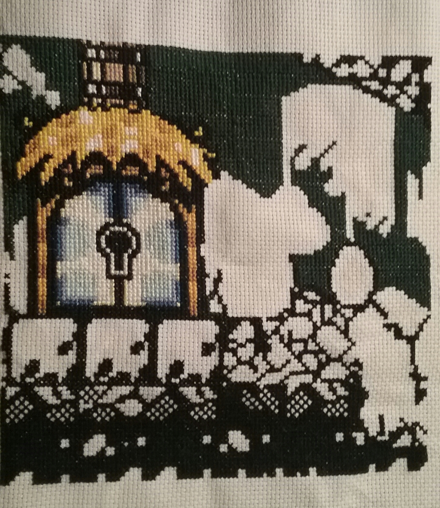 Monday was a sick day and I needed to stitch a little for distraction, so I did some work on K9!