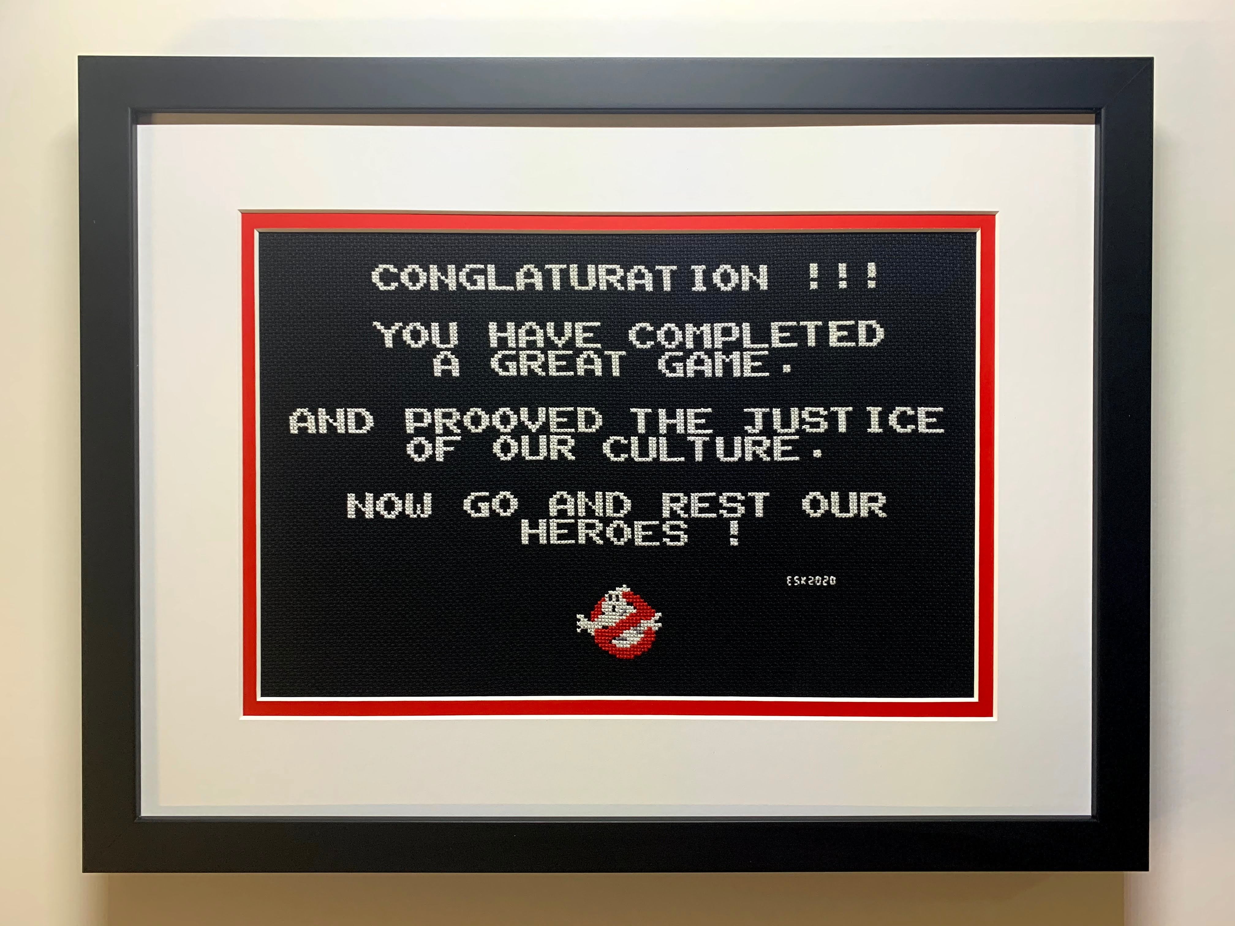 Just picked up Ghostbusters, all framed and finished. With the AGDQ prize submission deadline coming up on Saturday, I was starting to get a little nervous if I'd have it in time, especially with Christmas the end of this week, but we got it in time. Soon as I'm done here, plan to hop onto the GDQ website and get it submitted.