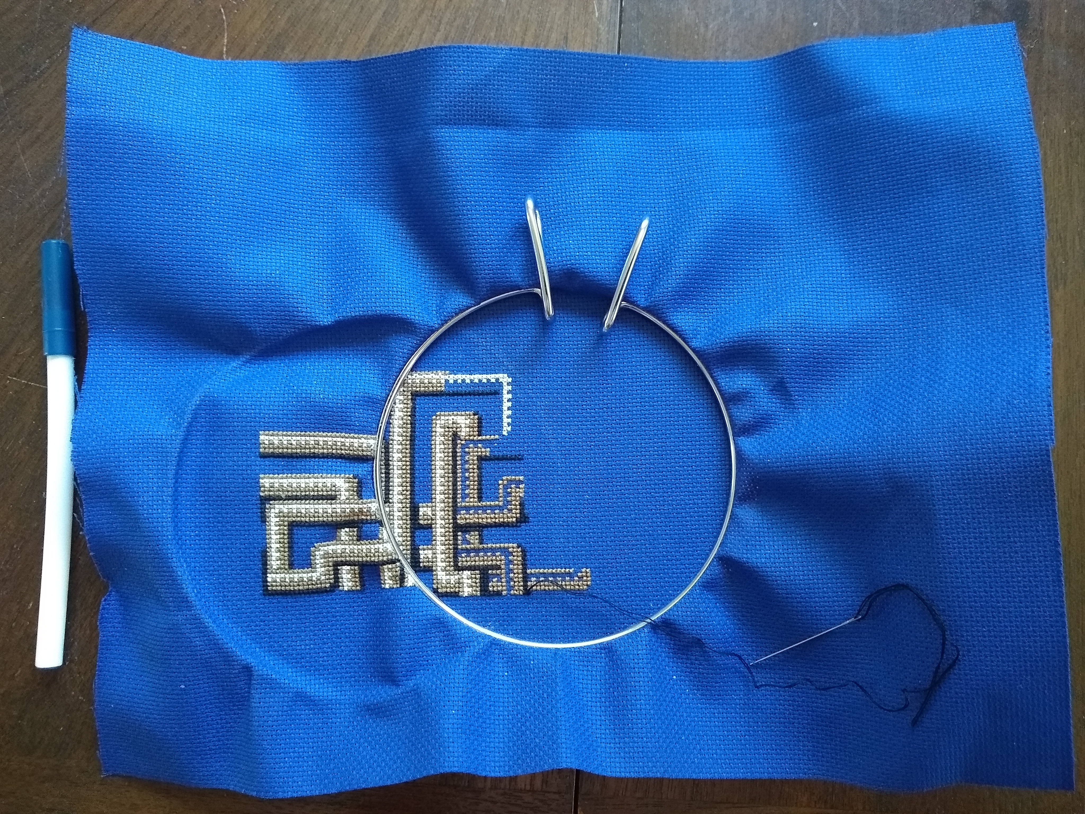 Two weeks in now and making good progress. Still shooting for mid-May, though that will require a little extra work here and there. While the overall picture isn't that big (see the pen in the picture for scale), there isn't a lot of empty space, so most of the picture has to be stitched. But I'm liking how things are turning out so far. Lack of context makes it a little hard to tell what we're looking at so far, but the next couple of weeks, we'll be getting more pipes done and maybe start Mega Man himself. The fabric plus shadows and such is still making stitching the black the hardest part, but we're making it work and fortunately, there isn't a ton of black. And the tan/yellow for the pipes is not a problem. So, keep plugging away and see how things go, and we'll see if we have to up production a bit more as we get into May.