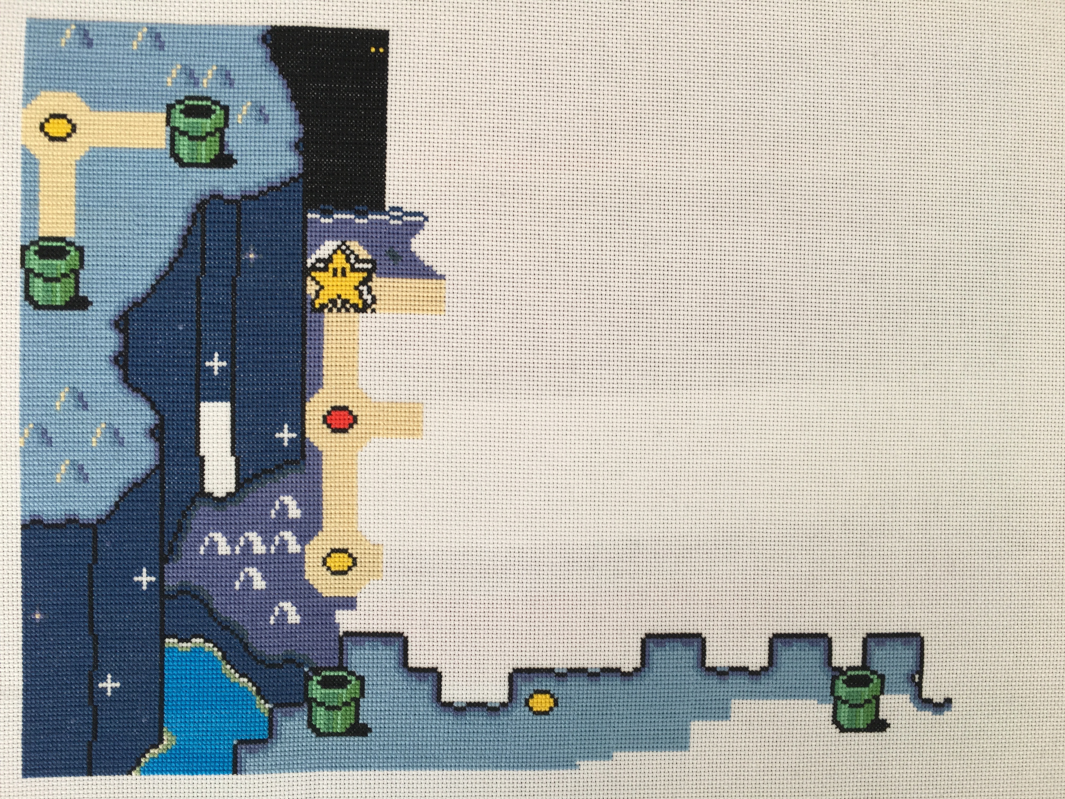 For my second ever project I've been steadily working on one of the designs for the super Mario Bowser screen (32K stitches - eek!) and I just wondered if I could ask some advice? When I stitch although I am doing it tightly (I think I am anyway) but when I'm done some white bits of the fabric are still showing - for an example see the attached pic of my WIP and you can see the white fabric peaking out from behind the black sky. Am I doing something wrong?