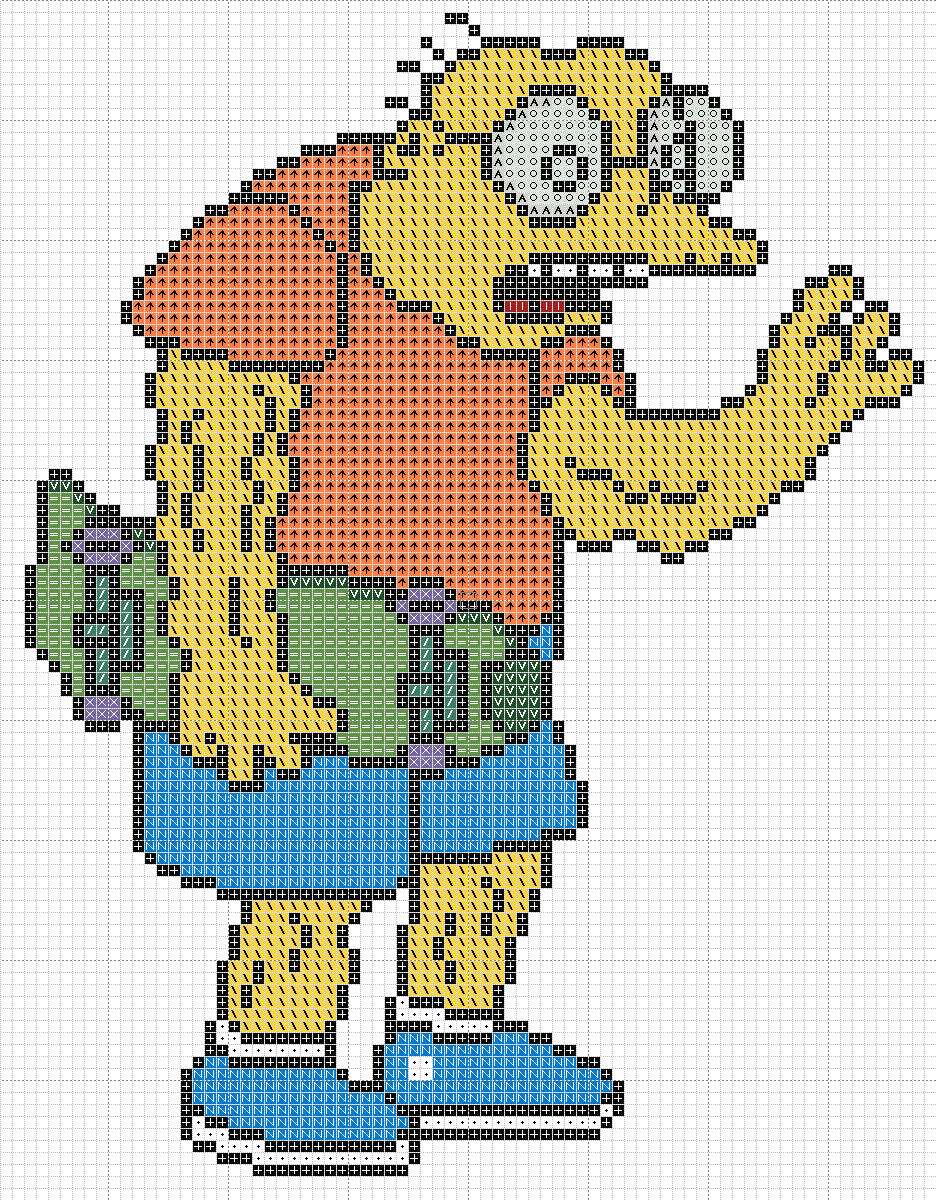 I was hoping someone might be able to help me turn Hans Moleman into a cross stitch pattern? I have tried to do it myself but am struggling a bit. If it could be similar to my last request, that would be great! Just a basic pattern of the character with limited colors. I'm planning on using 14ct Aida cloth again.