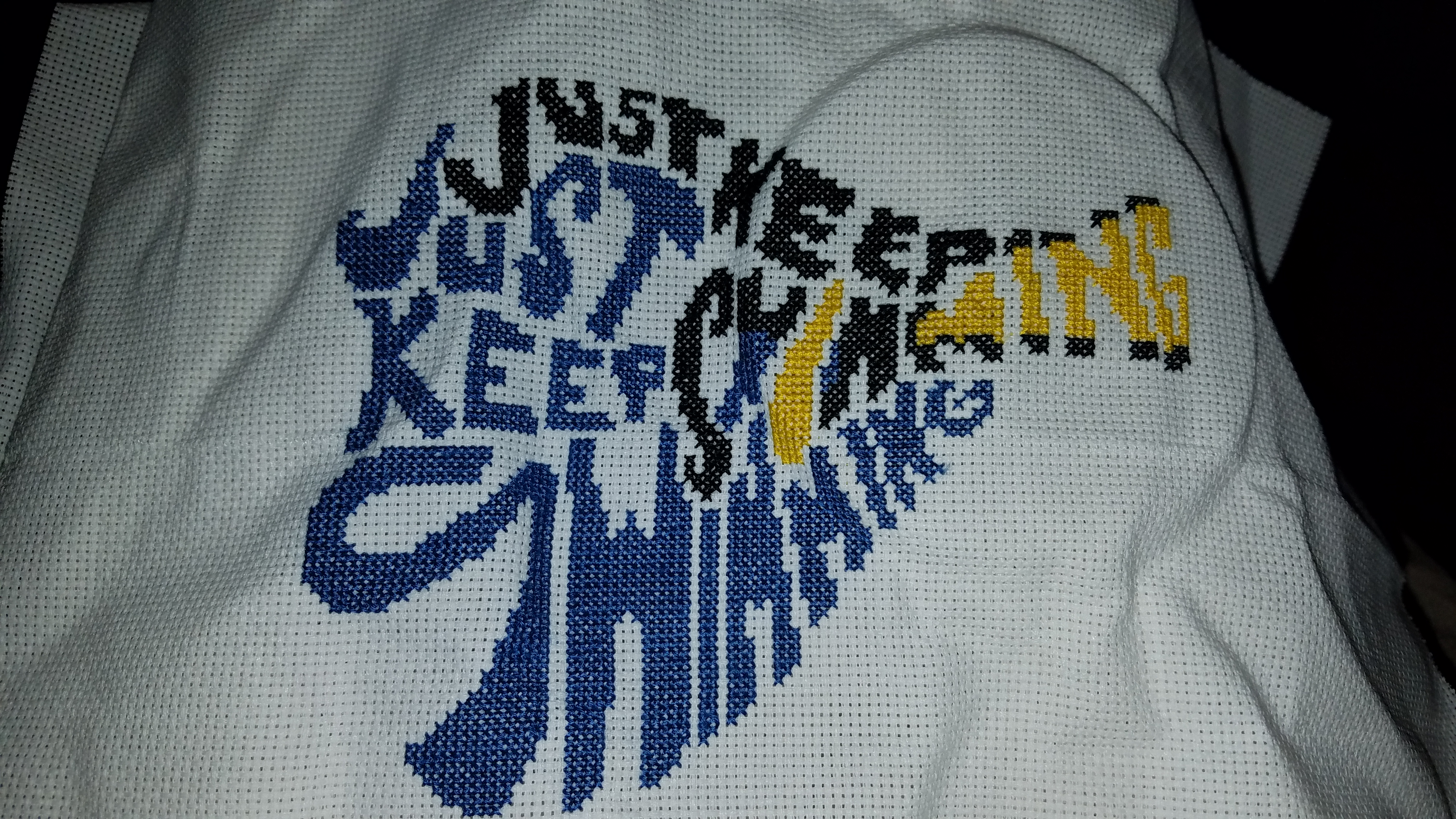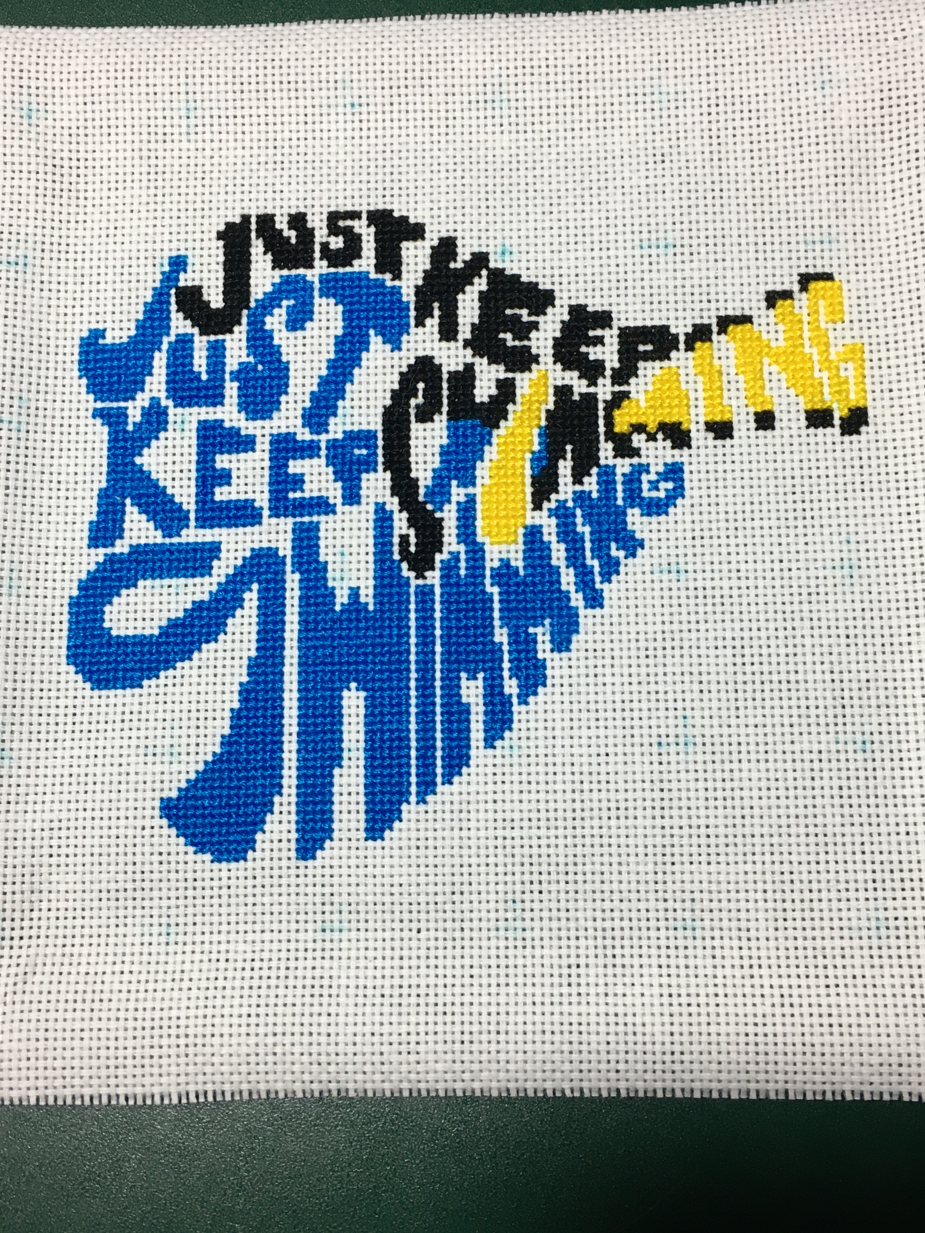 Preferably on 14 ct Aida with just the 3 colors. She mentioned trying to keep it 8x10 size wise because she would like to get it framed for her dorm room.