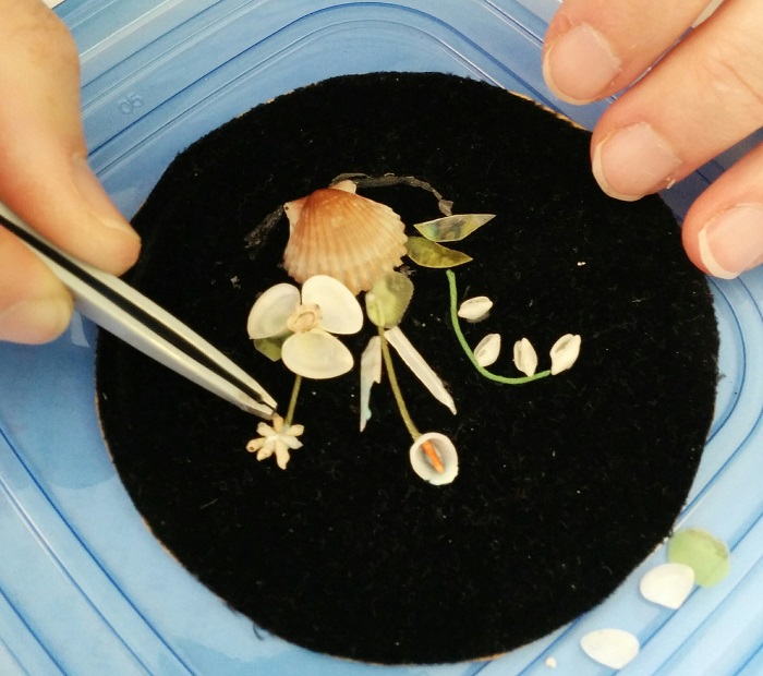 Bonus - a shell plaque made from dyed beach shells, coral and fish scales. My great grandma used to make and sell these during the depression, so Grandma was teaching my mother and I what she could remember of them.