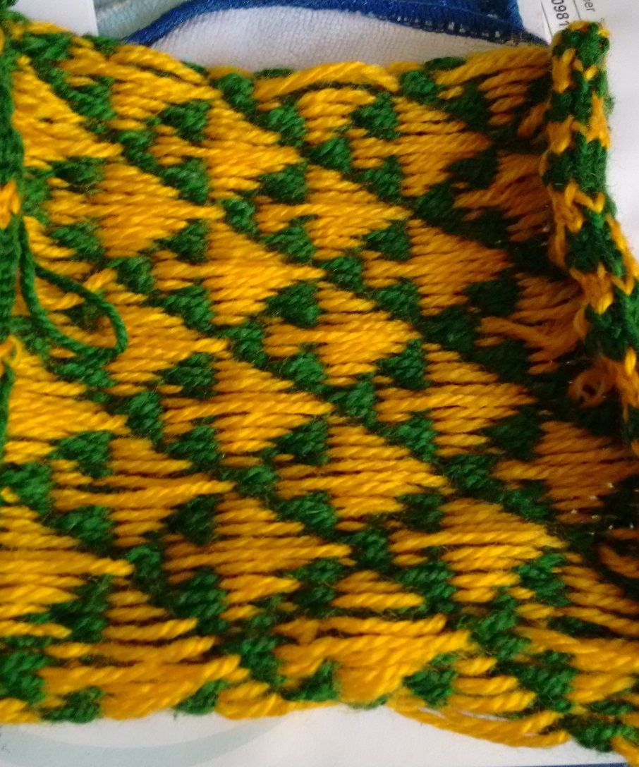 I am excited to start using it, but am not sure what to make at this stage. It uses punchcards to create 2 colour patterns, so I was wondering if anyone had some ideas for simple 2 colour repeating patterns. Will probably try to make a triforce