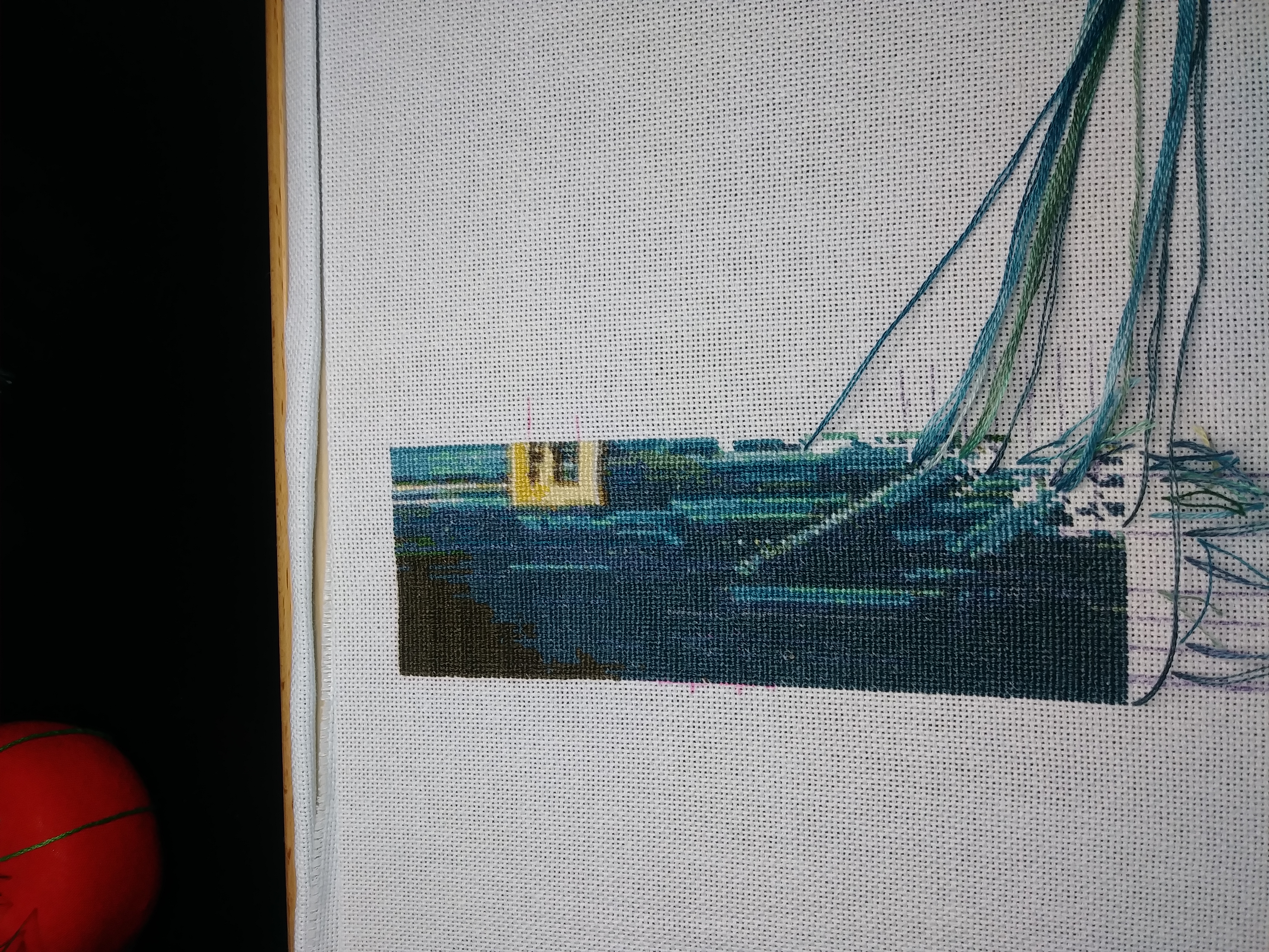 I love the picture and thought it would be amazing to do, but I'm worried I'll need to restart. I decided to do it on 28 count evenweave, 2x1, but I'm concerned it's not going to show enough detail because from the progress I made so far it's not easy to tell that it's buildings.