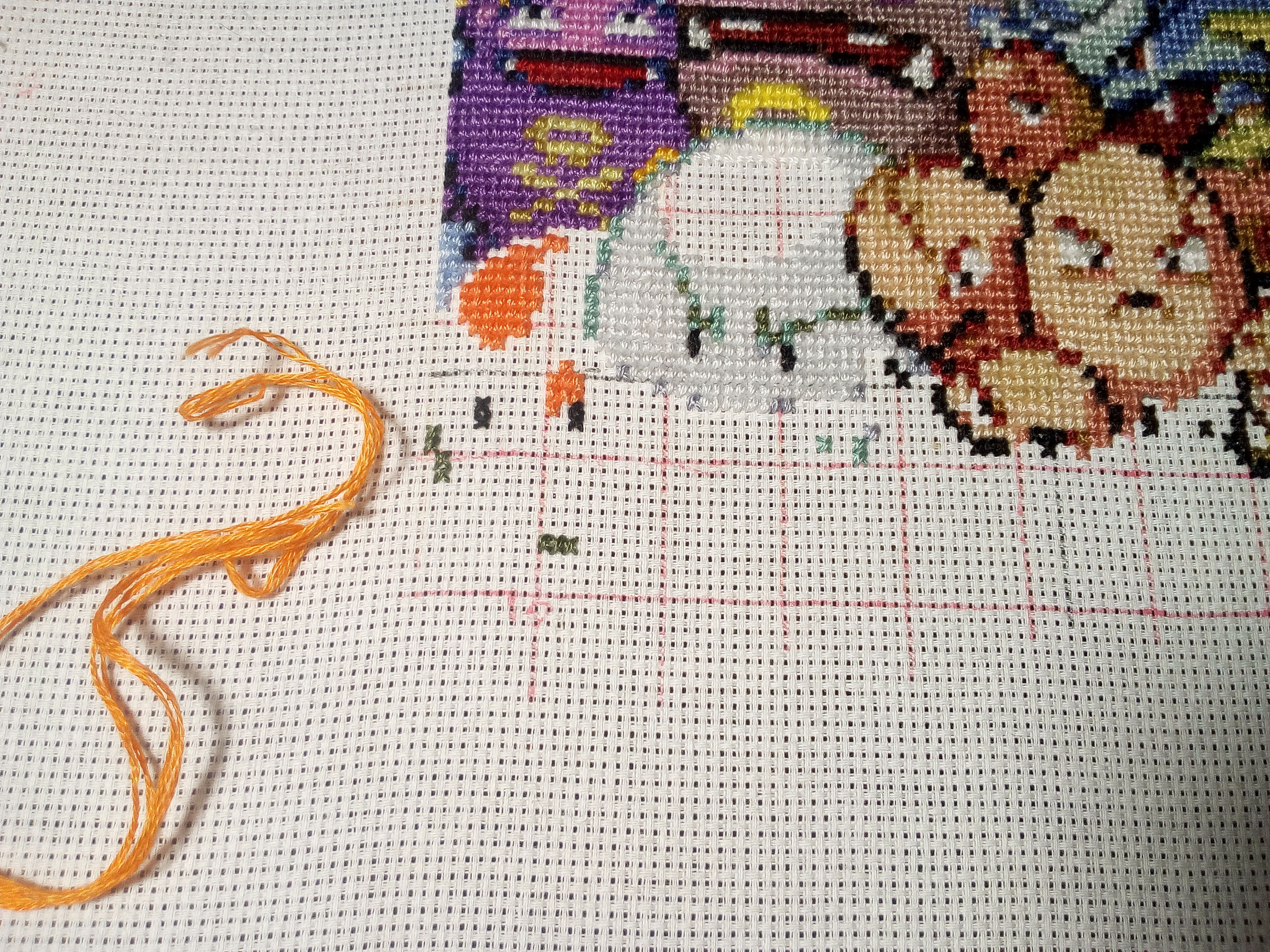 You're welcome. Thanks for sharing the update picture. I agonize over colors sometimes too and I wind up stalling on the project or just stop caring.. and I just saw your second post. Sorry I didn't see it earlier. Another orange problem? I had similar problems with the orange shades in my Epic Mario stitching. I found it helped a lot to study the WIP/finished examples of others to see if the color looks off before I start stitching. Though I was too cowardly to start changing colors until I was almost 1/5 in. Also, I'm about to order fabric and extra skeins today for a piece that all in red on black, but the pattern calls for bright orange and I'm dubious about it.didi01160 wrote:I finally received the new color and some supplies and I'm back to stitching.
