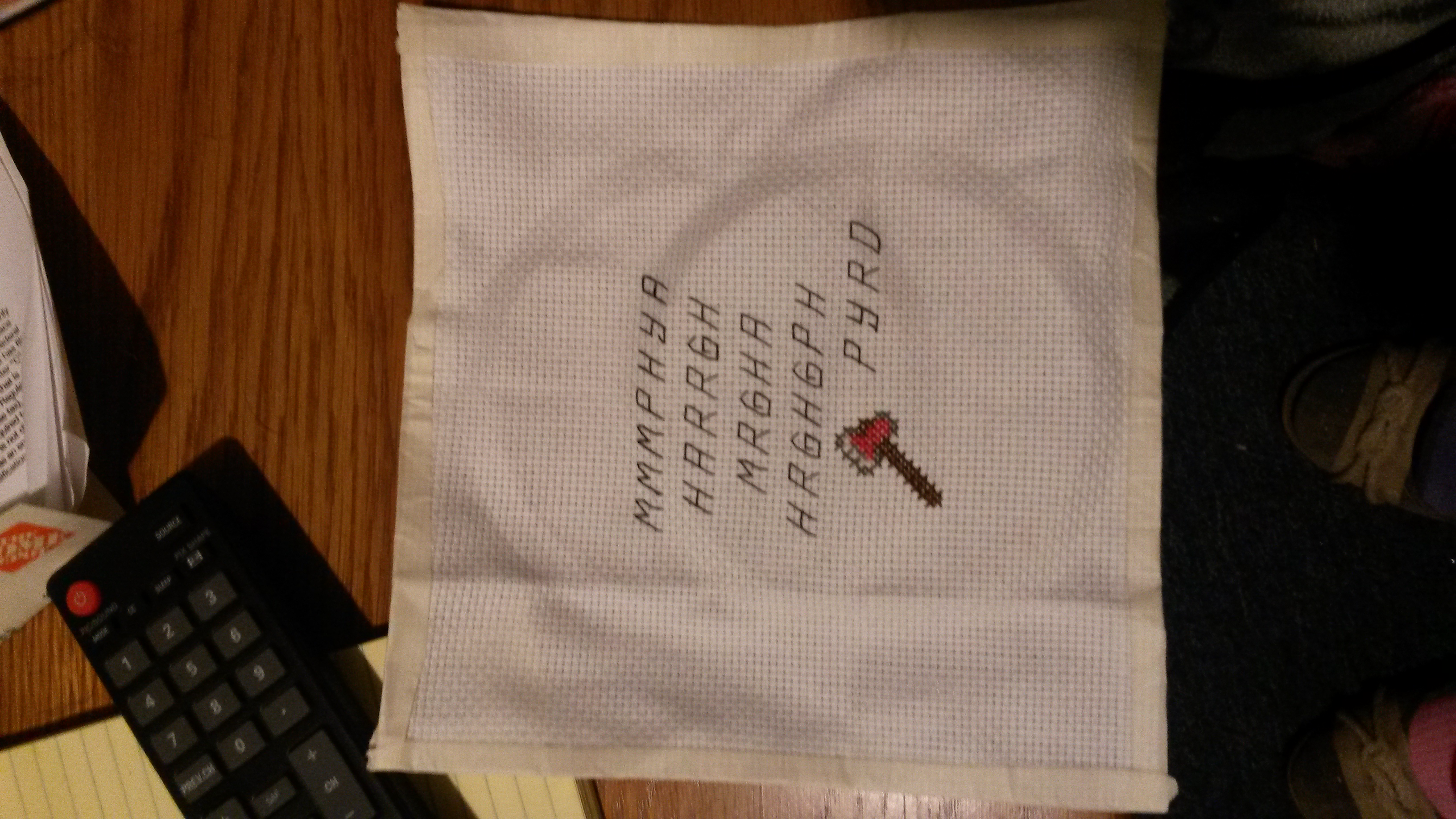 Your stitching looks great! I agree with blackberrybear...it would help complete the picture. If you add the text, good luck!
