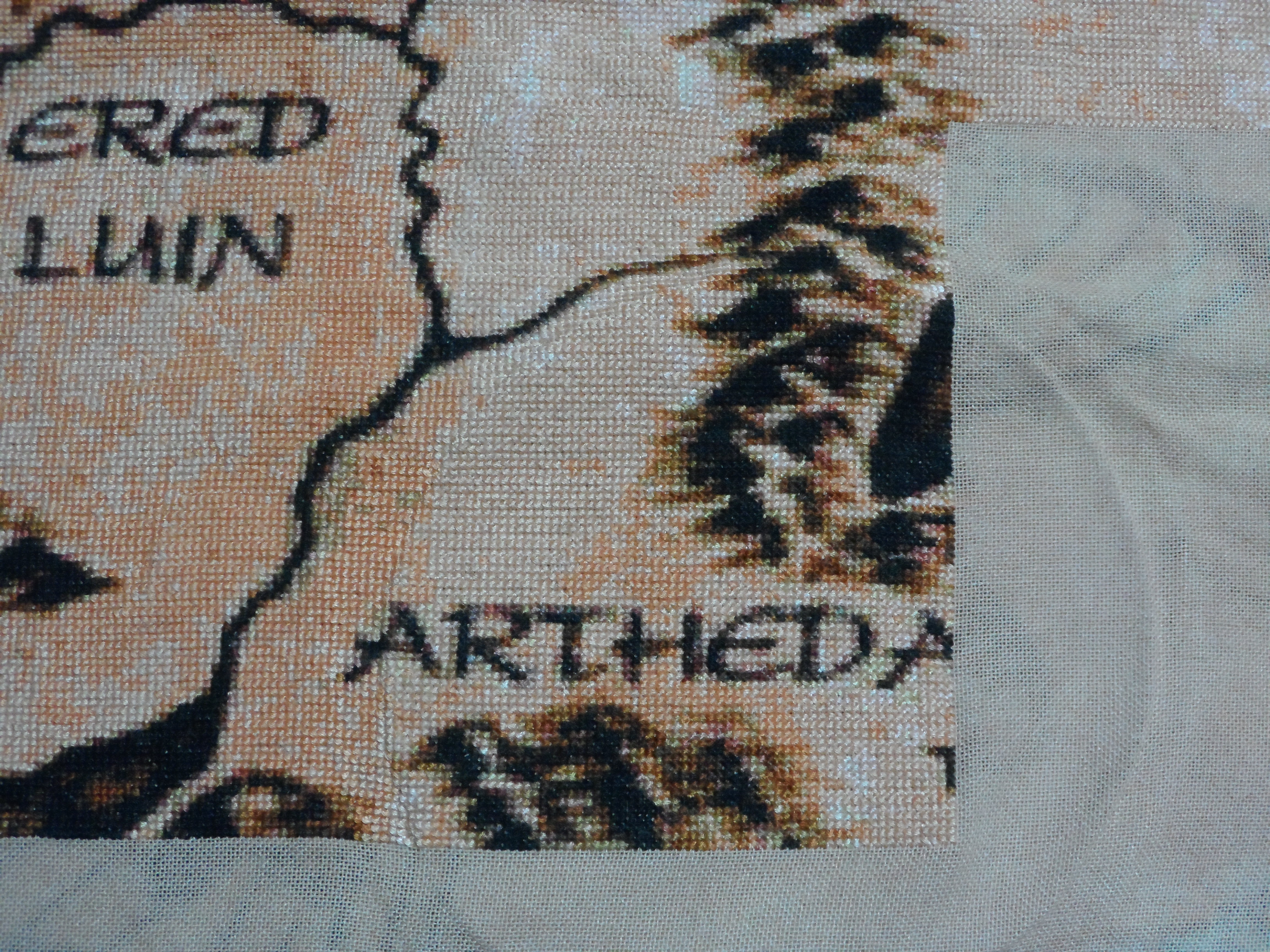 Have I mentioned how much I hate stitching the mountains and lettering? So many confetti stitches that it's almost not even worth it. Ugh!...And then I see it in picture form or from a distance and it looks almost three dimensional and it makes all the work worthwhile.